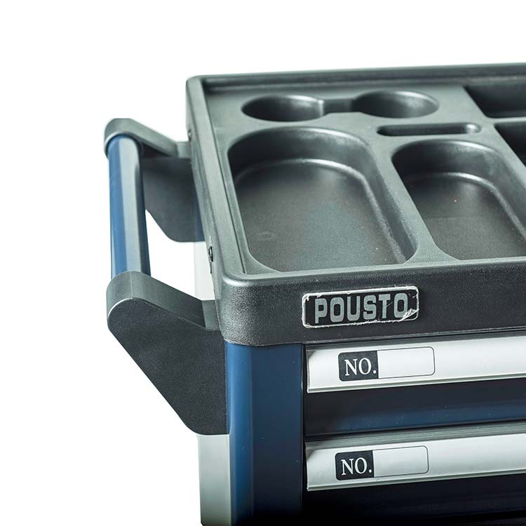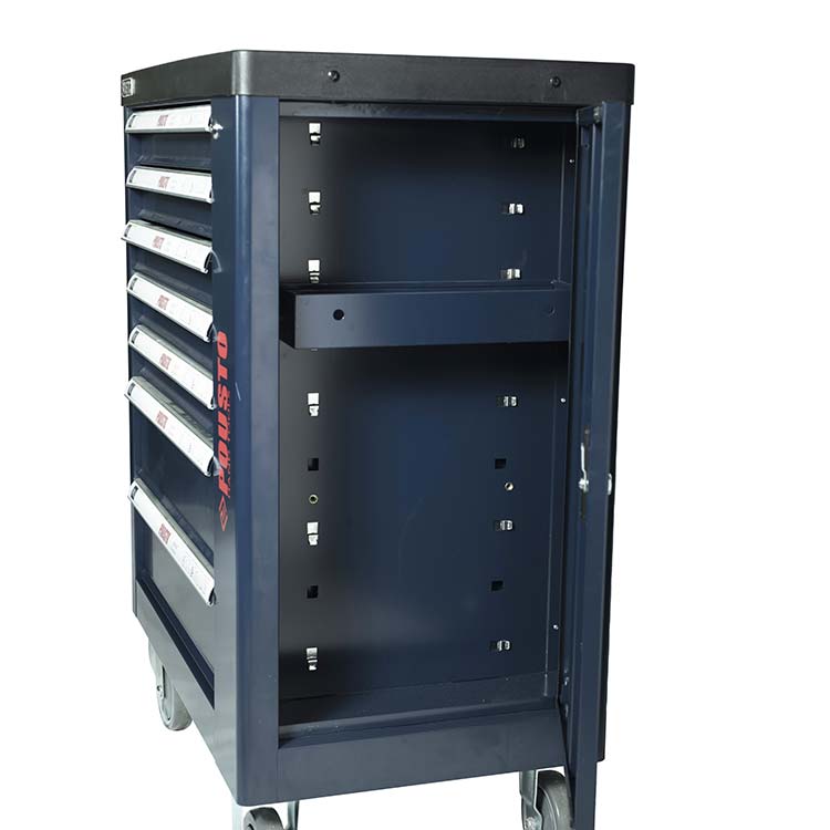 1.抽屜采用滾珠導(dǎo)軌,抽屜承重力為50kg/層,六層抽屜不同高度能儲(chǔ)存不同種類的工具,中央側(cè)鎖設(shè)計(jì),開啟方便,每個(gè)抽屜都配有防傾倒保護(hù)鎖。