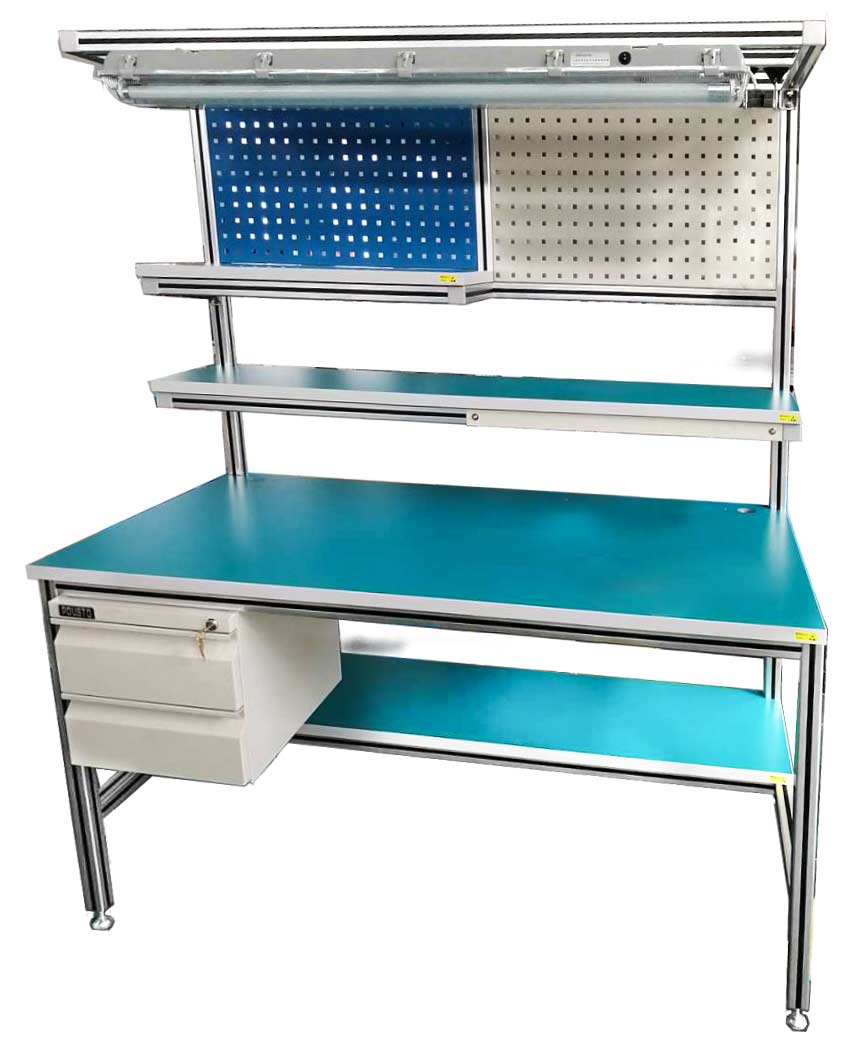 鋁合金工作臺(tái)人性化設(shè)計(jì),符合人體工程學(xué)原理,提高生產(chǎn)效率模塊化設(shè)計(jì),多種附件可視需要任意組合,且具有互換性;標(biāo)準(zhǔn)化設(shè)計(jì),防靜電工作臺(tái)、鋁合金工作臺(tái)可根據(jù)不同要求,定制您所需產(chǎn)品;高品質(zhì)臺(tái)面,具有防靜電/防火/耐磨等性能;鋁合金工作臺(tái)高低可調(diào)節(jié),適合您的使用需求;支撐采用鋼結(jié)構(gòu)設(shè)計(jì),堅(jiān)固耐用,可均勻承載500kg;整體防靜電,從根本上杜絕潛在靜電對(duì)產(chǎn)品的威脅。